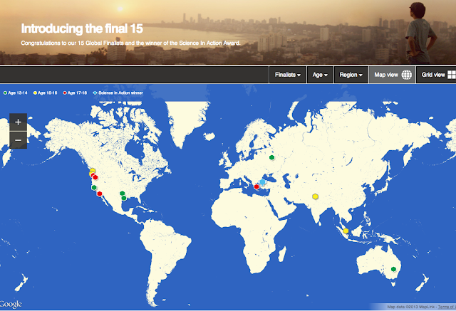 Google Science Fair. Сьогодні ми оголошуємо 15 фіналістів, яких було обрано з числа 90 найкращих регіональних фіналістів, а також ім’я володаря нагороди