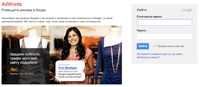 Щоб переглянути та прийняти нові Умови використання AdWords, увійдіть в свій обліковий запис на сторінці